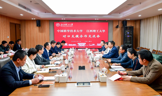 在对口支援合作交流会上,我校党委书记刘祖文代表学校对舒歌群一行的到来表示热烈欢迎,对中国科学技术大学长期以来给予我校的大力支持和无私帮助表示感谢。他指出,中国科学技术大学对革命老区怀有深厚的情怀和强烈的使命感,自中国科学技术大学对口支援江西理工大学以来,我校在人才培养、学科建设、师资队伍培育、科研合作与协同创新等方面取得了积极成效,有力推动了学校事业高质量发展。未来五年,是学校奋力“创建稀土与关键矿产领域世界一流大学”的关键时期,希望中国科学技术大学加大支持学校人才培养、学科建设、师资队伍、科学研究等工作力度,特别在支持我校“创建稀土与关键矿产领域世界一流大学”和建设省域副中心教育科教人才高地上予以更多的指导和帮助。