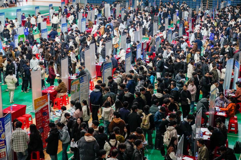 本网讯 12月24日,我校在三江校区体育馆内举办2026届毕业生宏志助航研后专场就业洽谈会。据悉,本次招聘会共吸引105家单位参会,招聘人数超过4200人。4000余名毕业生进场求职,企业累计接收简历9000余份。