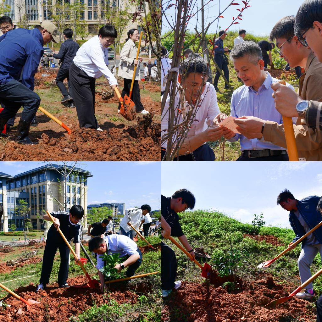 本次活动中,至善园和量子园辅导员和学生代表共57人种植桃树,红旗园辅导员和学生代表共57人种植李树,风华园和正茂园辅导员和学生代表共74人种植脐橙树。活动将生态文明教育、师德师风建设、乡土情怀培育与劳动实践深度融合,在美化校园的同时,也在师生心中播下绿色理念、师德初心与家国情怀的种子。