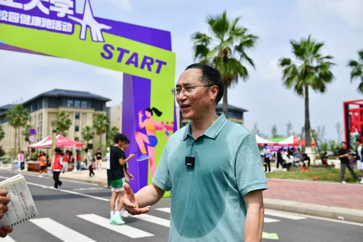 刘祖文书记与大家一同参与10.25 千米拾月启航路线健康跑。他表示,“健康跑是学校体育运动体系的重要组成部分,既能锤炼意志品质,也能增进师生交流互动,营造快乐向上的运动氛围。希望同学们尽情享受运动的快乐,在坚持中收获成长,以昂扬姿态奔跑在青春赛道上。