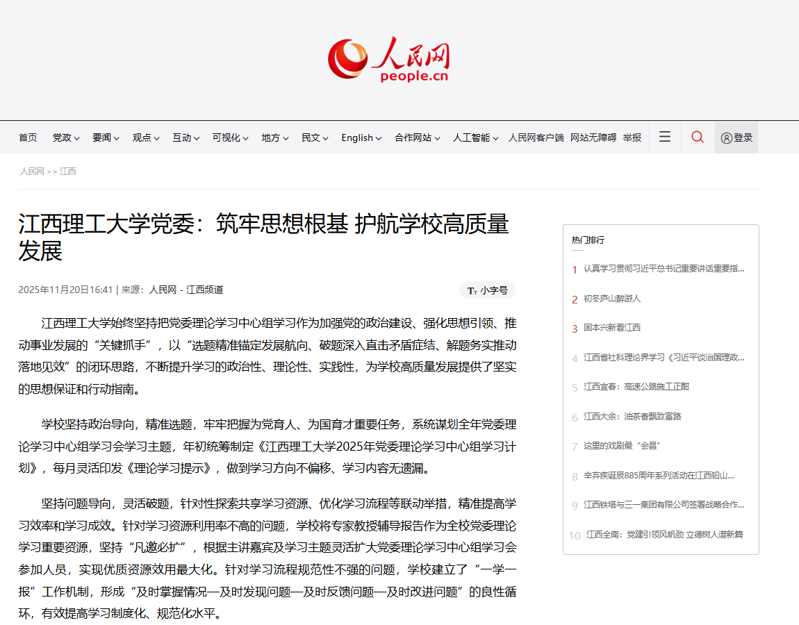 《人民网》:江西理工大学党委:筑牢思想根基 护航学校高质量发展