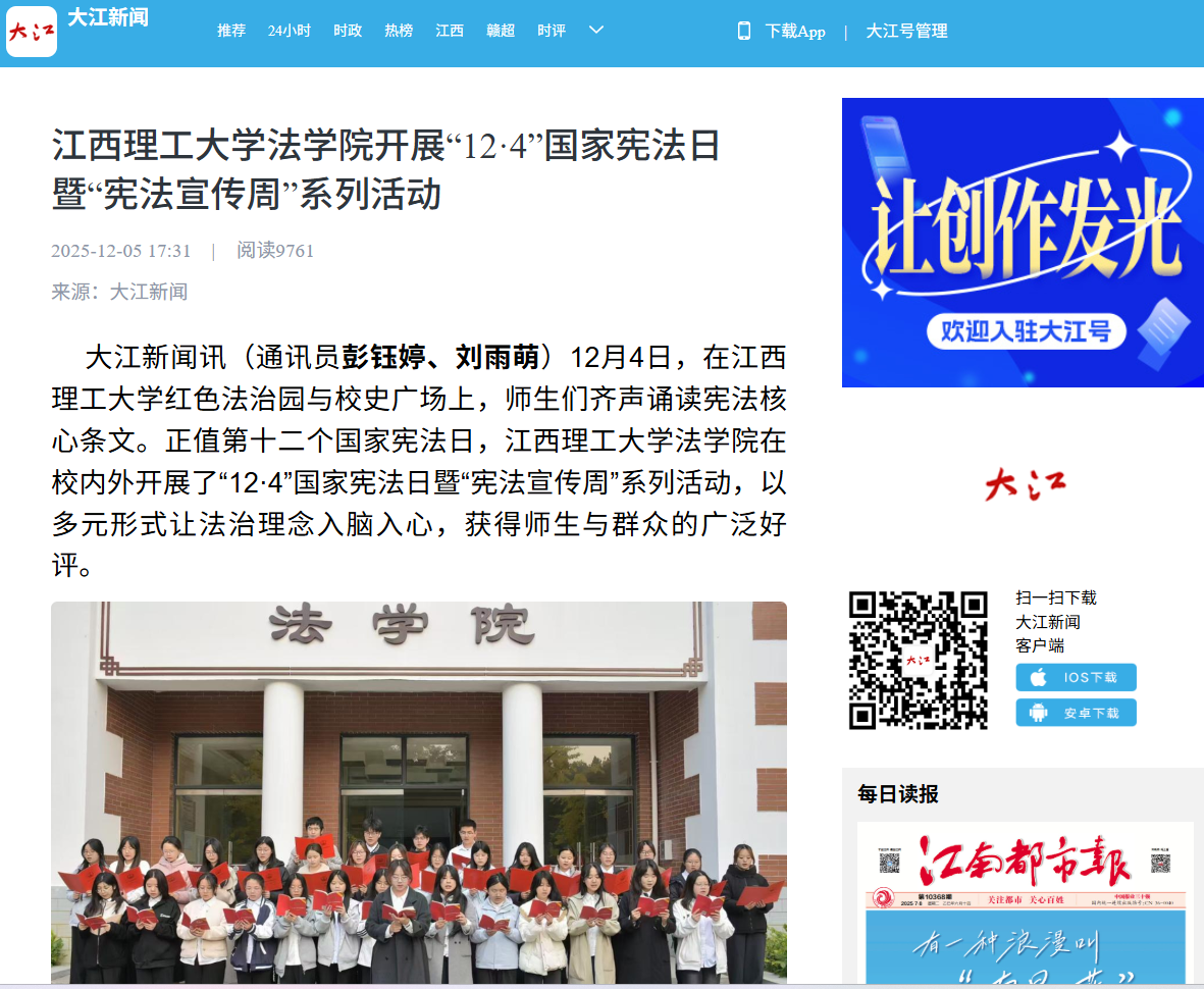 《大江新闻》:江西理工大学法学院开展“12·4”国家宪法日暨“宪法宣传周”系列活动