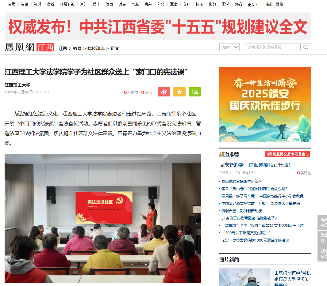 《凤凰网江西》江西理工大学法学院学子为社区群众送上“家门口的宪法课”