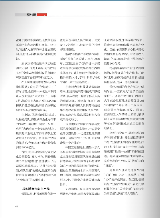 《当代江西》:“双向奔赴”:科技链一产业链——江西推动科技创新和产业创新深度融合观察