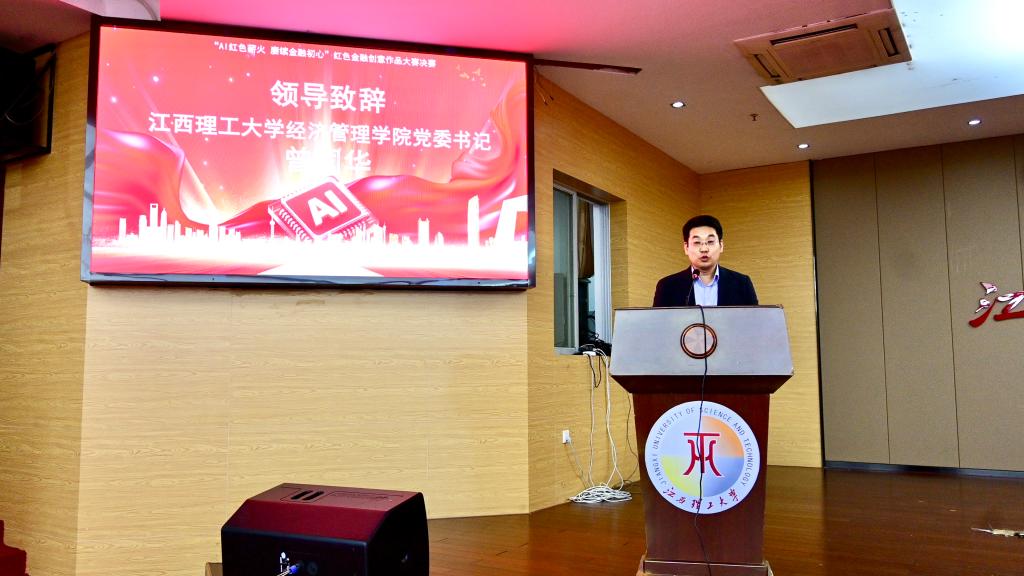 本网讯  10月25日,在中国证券监督管理委员会江西监管局、赣州市人民政府办公室指导下,国盛证券联合江西省证券期货业协会、江西理工大学经济管理学院开展的“AI红色薪火·赓续金融初心”红色金融创意作品大赛决赛于红旗校区图书馆赵氟隆学术报告厅举行。赣州市政府办公室副主任朱雪林,国盛证券赣州分公司负责人卢毓明,国盛证券投资者教育基地总经理吴凌志等嘉宾出席决赛。经济管理学院党委书记曾国华、校学工部副部长孟冲、经济管理学院党委副书记吴媛及赣州市政府办、国盛证券、赣州市金融研究院的相关领导与教师代表共同参与活动。