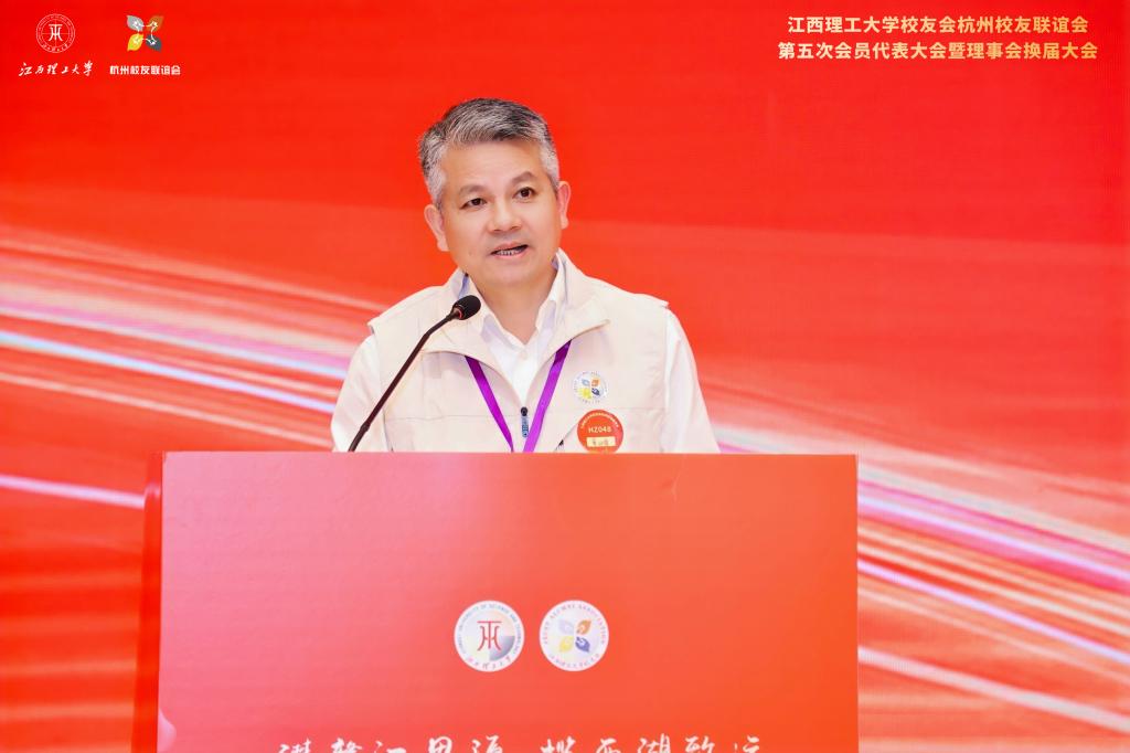 本网讯  10月26日,我校校友会杭州校友联谊会第五次会员代表大会暨理事会换届大会在杭州举行。校党委原书记、校友会名誉会长、赣南实验室执行主任杨斌,党委常委、副校长董冰岩应邀出席会议,国内合作促进中心、校友会秘书处、南昌校区管委会、机电工程学院、能源与机械工程学院、招生就业处等部门负责人参加会议。来自北京、上海、湖北、南京、深圳、香港、宁波、湖州、兰州、南昌、厦门、苏州、黄石等多地校友联谊会代表与在杭校友代表300余人共同参加会议。