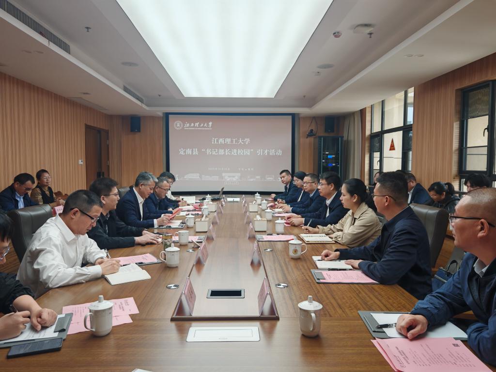 本网讯  10月29日,定南县委常委、组织部部长刘成成一行来校开展“书记部长进校园”引才活动,并在三江校区(东园)濂溪楼2号会议室举行校地合作交流座谈会。校党委常委、副校长董冰岩出席座谈会。组织部、科技处、矿业工程学院、体育与艺术学院等学院与部门负责人共同参加会议。会议由国内合作促进中心主任许洪胤主持。