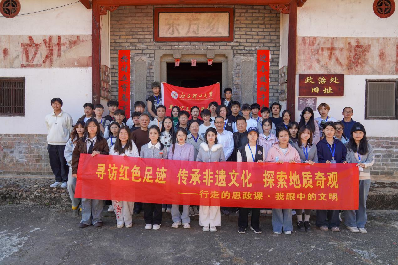 本网讯 为推动赣州市文明实践校地协作联动工作落地见效,强化校地优质资源融通,服务地方产业发展、促进乡村振兴,我校联合上犹县新时代文明实践促进中心、平富乡新时代文明实践所,于11月22日组织47名师生赴上犹县平富乡开展“寻访红色足迹、传承非遗文化、探索地质奇观——行走的思政课・我眼中的文明”文明实践主题活动。