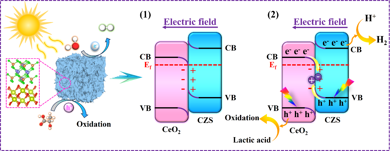图 5. S型 CZS-CeO2异质结的光催化产氢反应机理图。