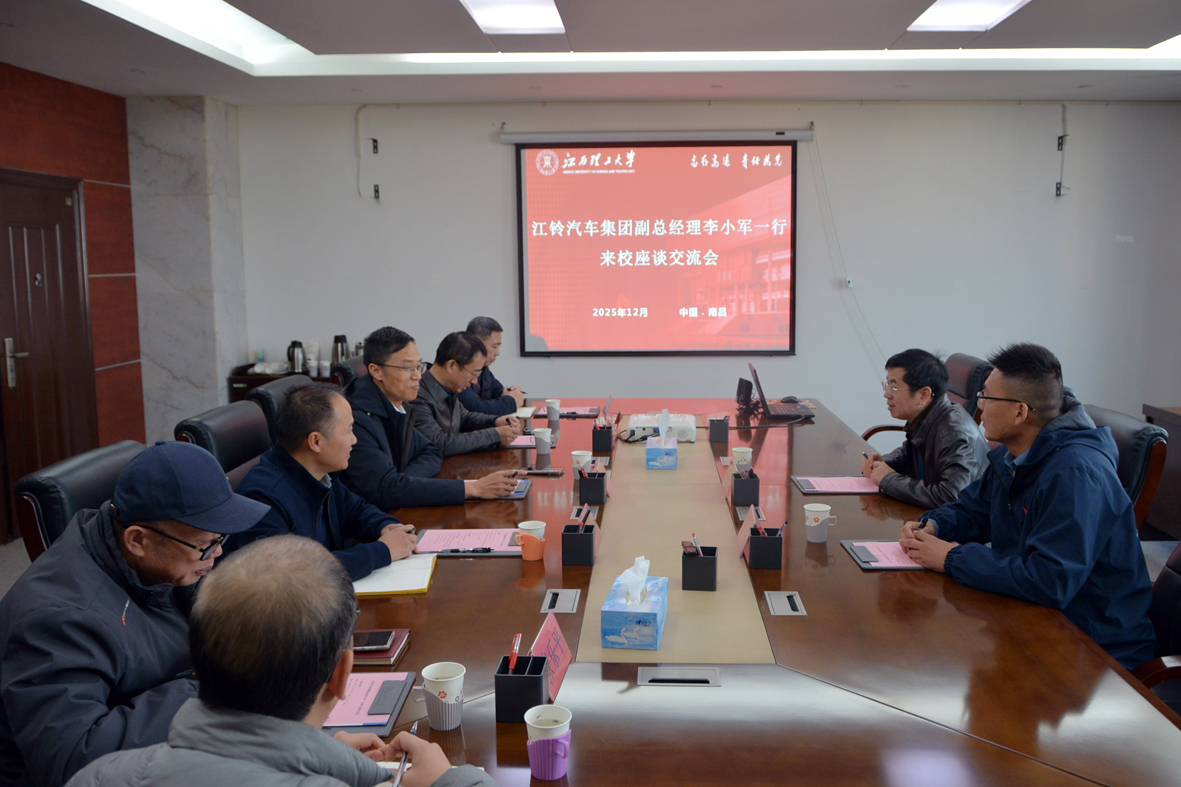 本网讯 12月30日,江铃汽车集团副总经理李小军一行来访。南昌校区管委会分管日常工作的副主任兼党委副书记潘春荣在南昌校区会见了李小军一行。国际创新研究院常务副院长兼能源与机械工程学院院长帅词俊、副院长李亮星等参加会议。