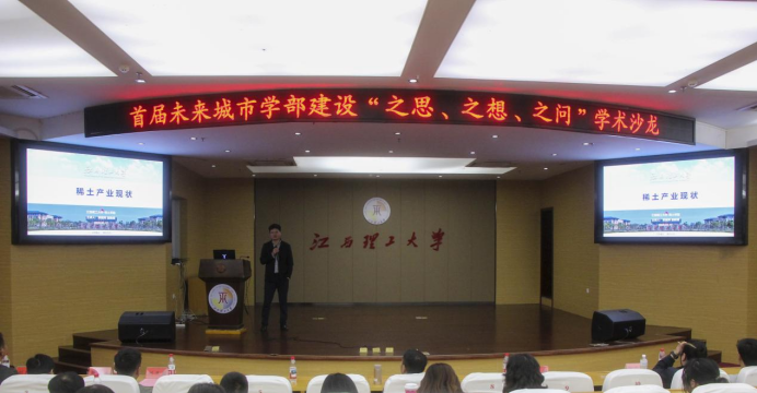 黄建辉以“稀土不稀,稀土也不土”为引,生动科普稀土资源储量、应用价值与产业前景,介绍创新中心平台架构及产学研合作方向,展现稀土产业与未来城市学部交叉融合的广阔空间。