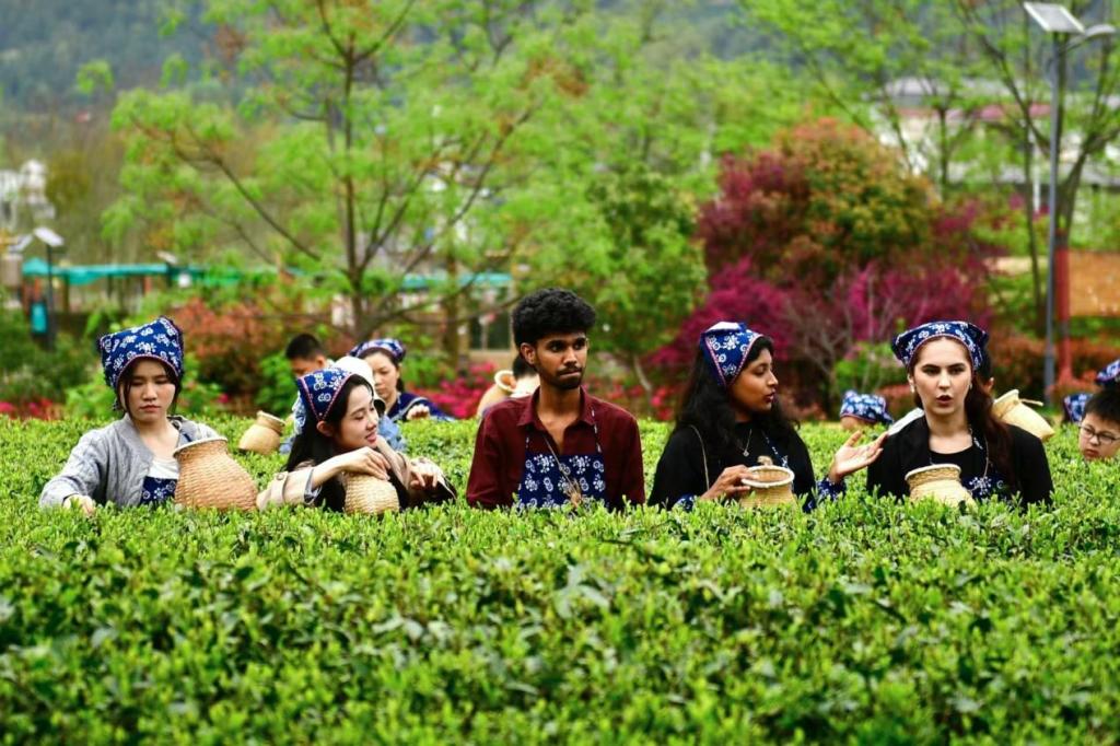漫步茶园,一场别开生面的采茶实践课生动开展。以茶为桥、以劳为介,国际学生与中国学子并肩劳作,跨越语言差异,在层层茶垄间沉浸式感受中华传统茶文化。国际学生从最初好奇试探,到熟练掌握轻提巧采的采茶技法,在指尖触碰新芽间,真切领略中国茶文化的精巧与韵味,收获满满。大家在躬身实践中体会一芽一叶的来之不易,在互动交流中增进文化理解与友谊,以青春实践厚植文化认同,让使命担当在劳动与传承中不断升华。